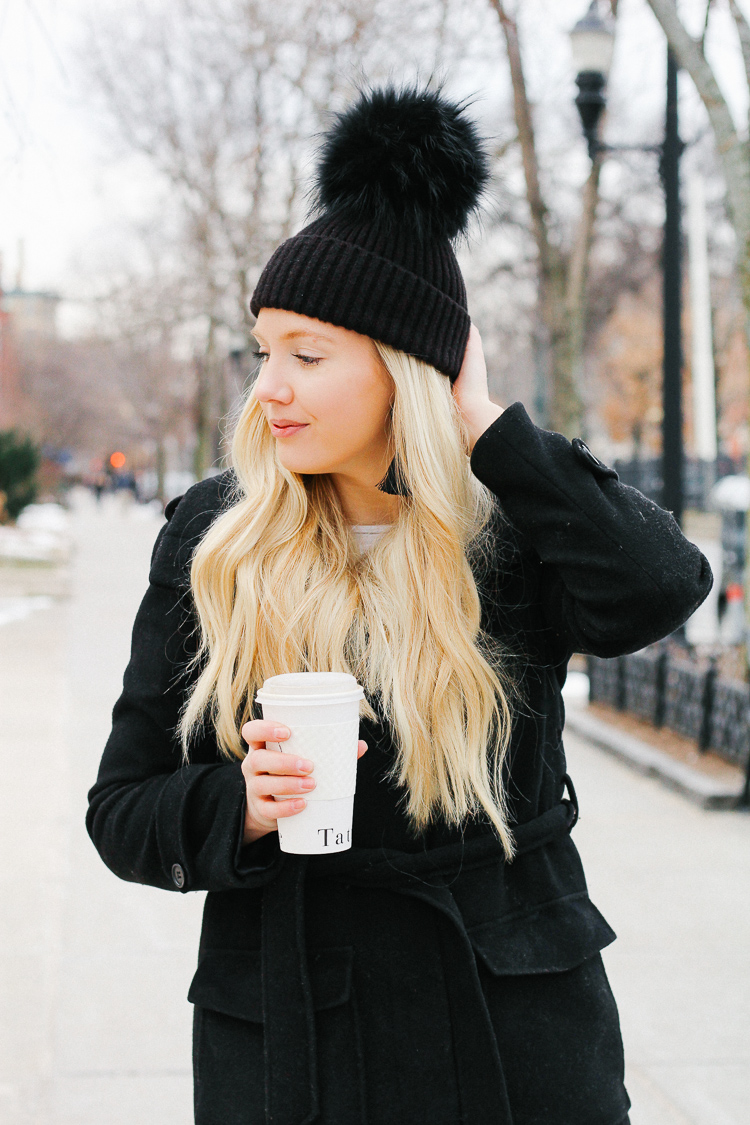 Since I tend to stick to the same clothing items when it’s cold, I usually depend on accessories to pull together an outfit. I’ve been wearing a lot of black lately, and tend to wear a lot of neutrals this time of year. Pink Pineapple Shop reached out to me recently and sent me this hat. It’s 10% cashmere, which doesn’t sound like a lot, but it’s enough that it isn’t itchy in the slightest, and is very warm. I’ve been super impressed with the quality. It’s giving me total #snowbunny vibes, and I’ve been alternating it with my Patriots beanie, and wear those two basically every day.